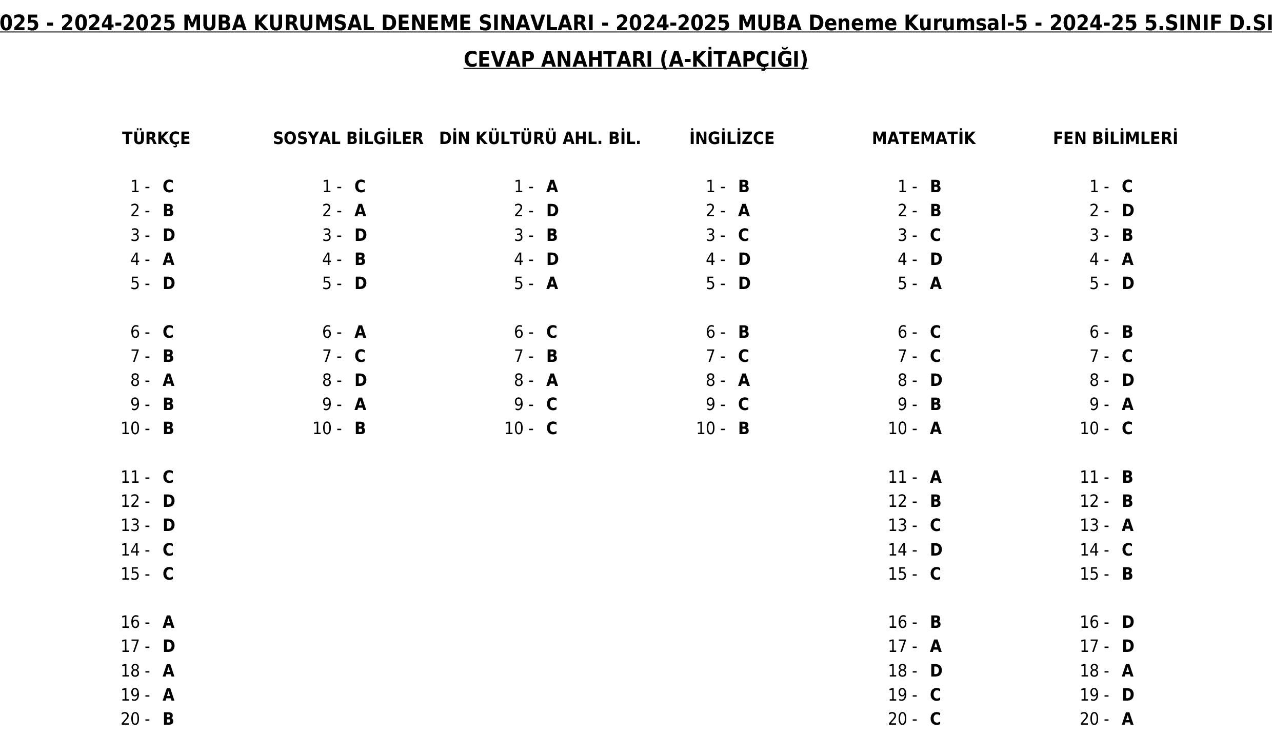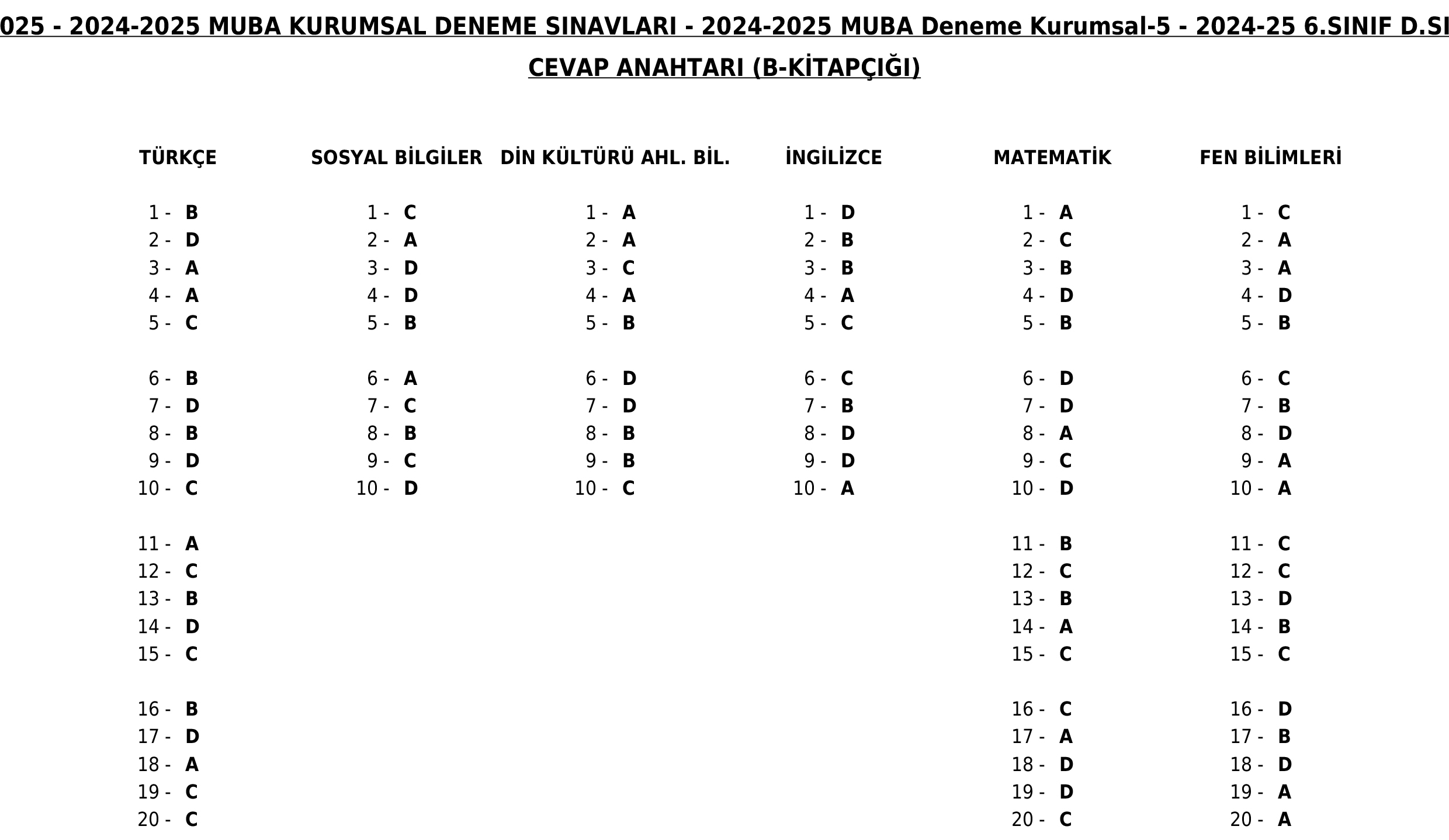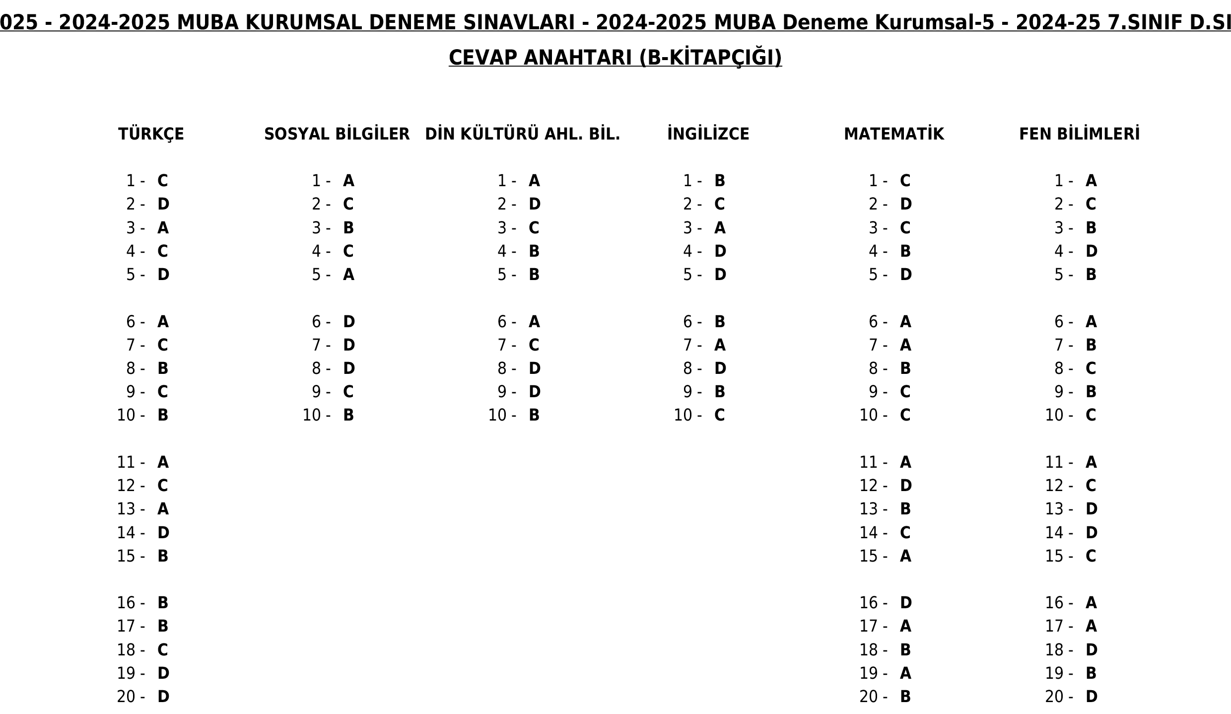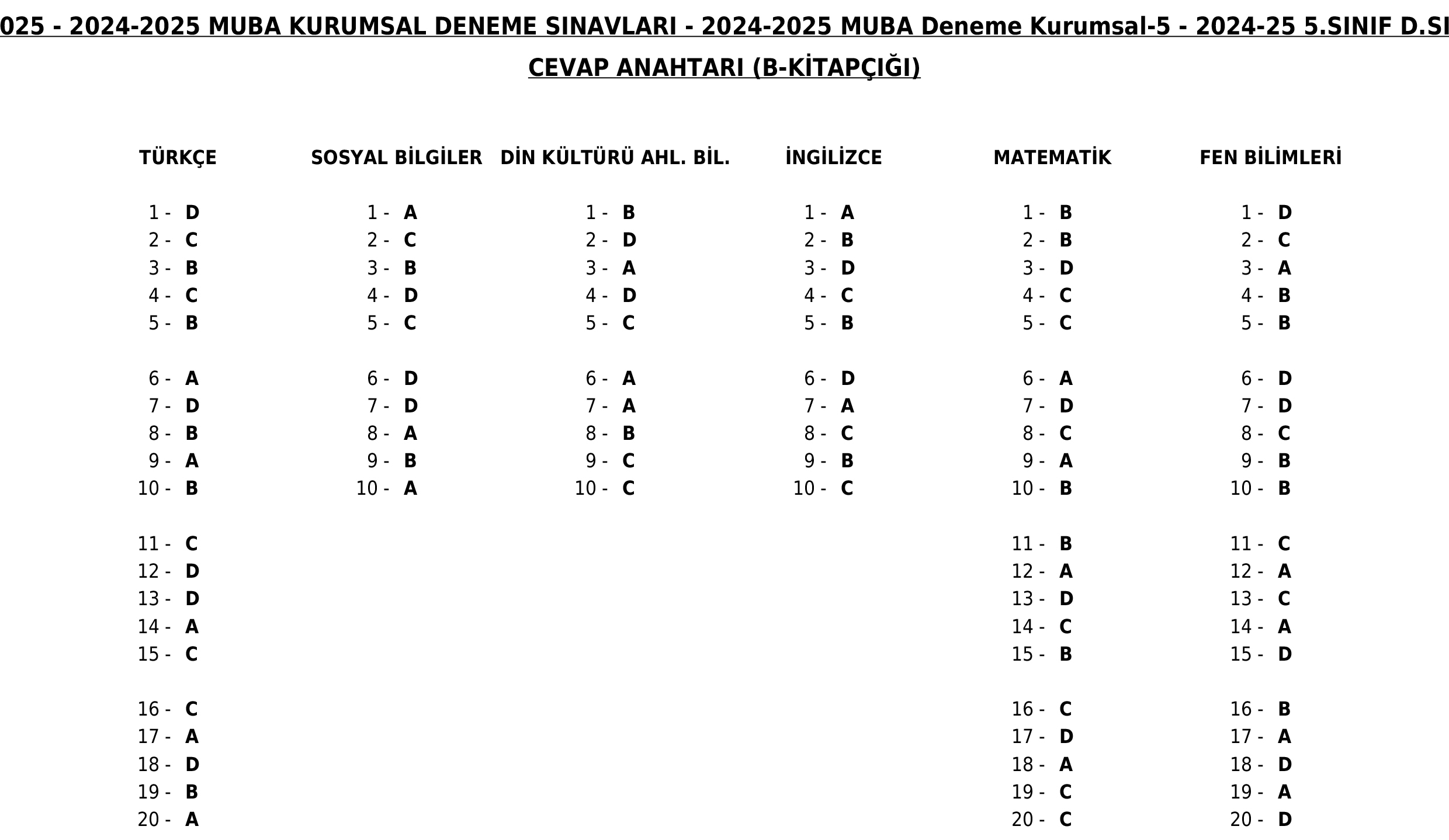 30 Mayıs - 1 Haziran MUBA 5.DENEME 5 - 6 - 7.SINIF