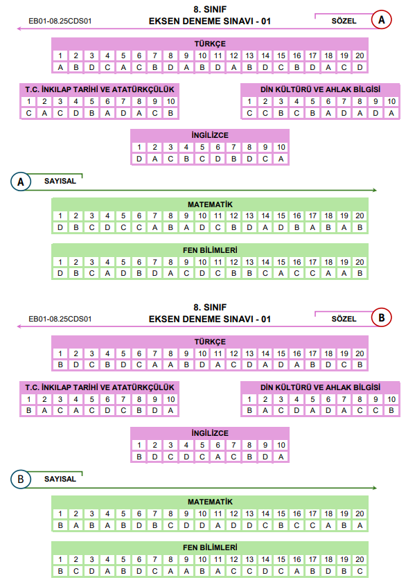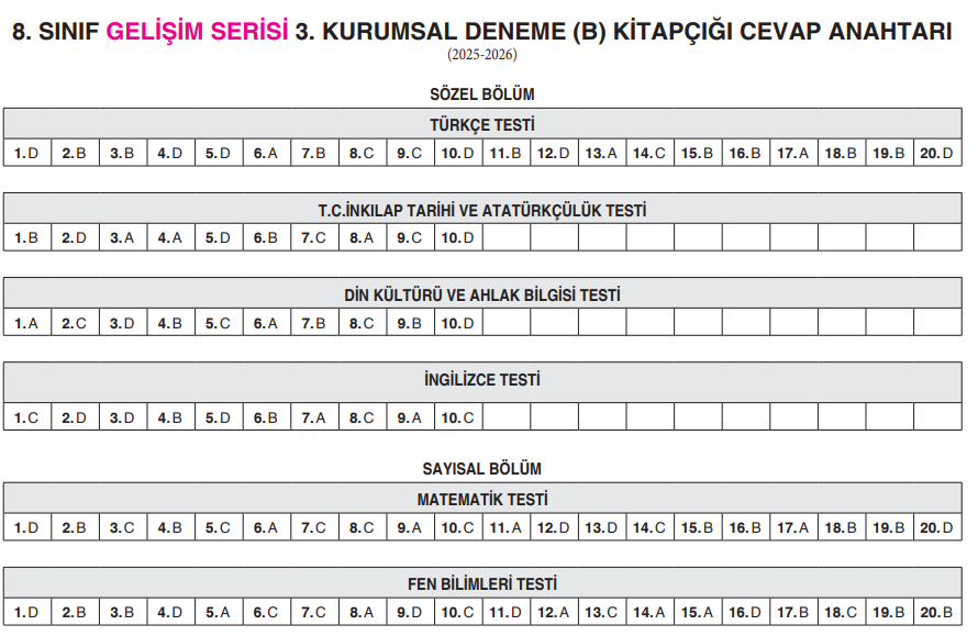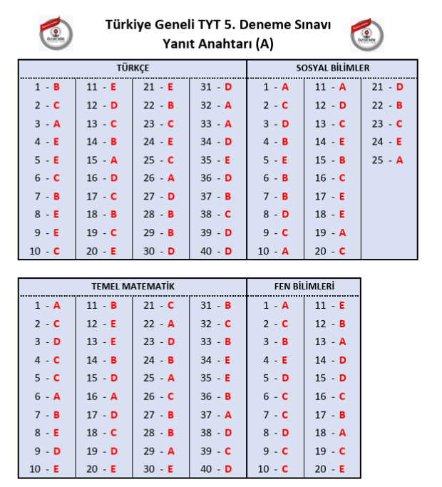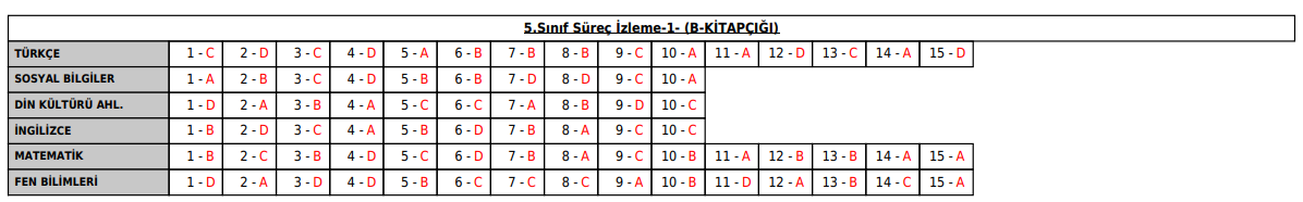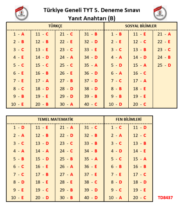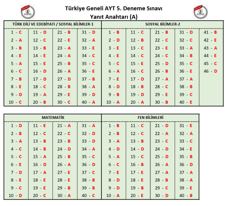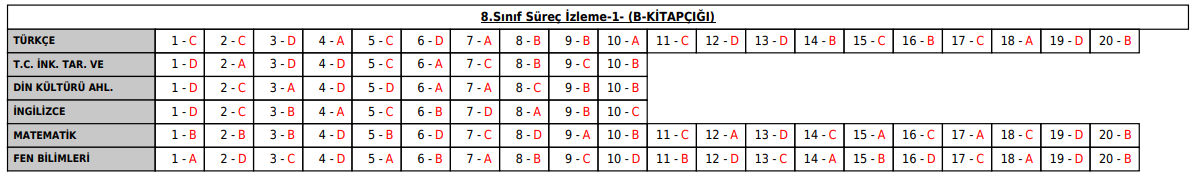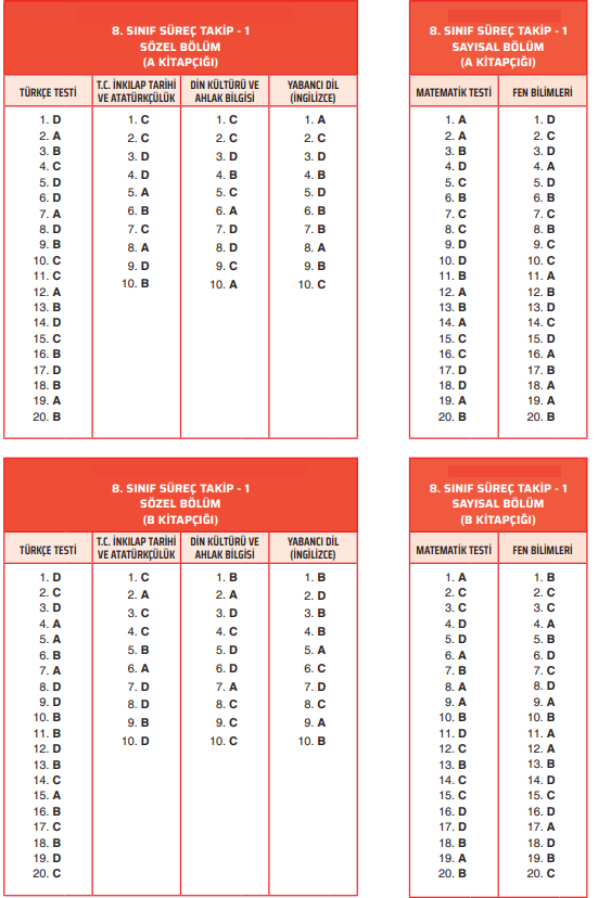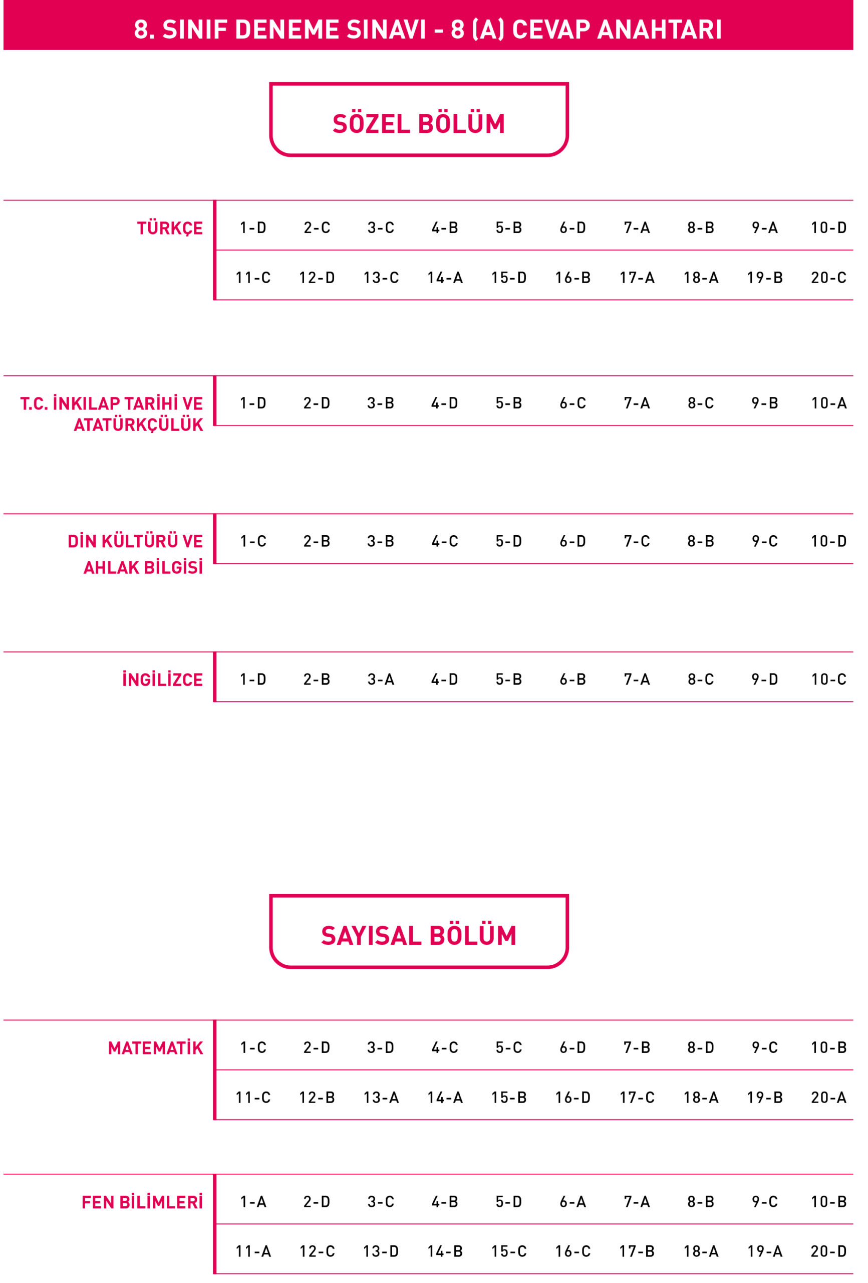 29 - 30 Ocak ÜCRETSİZ DENEME CEVAP ANAHTARI 5 - 6 - 7 - 8