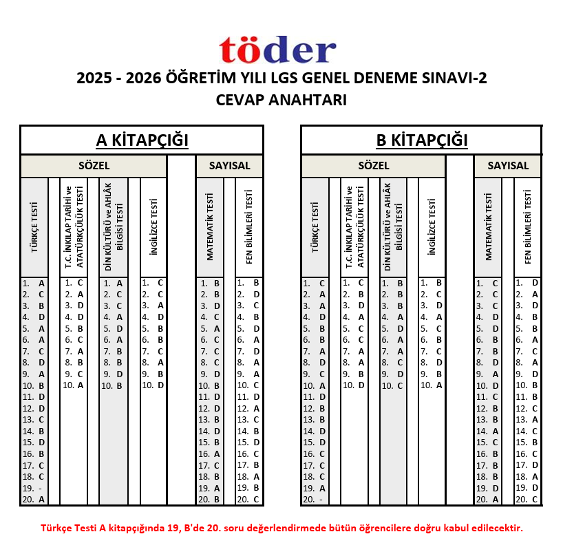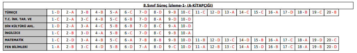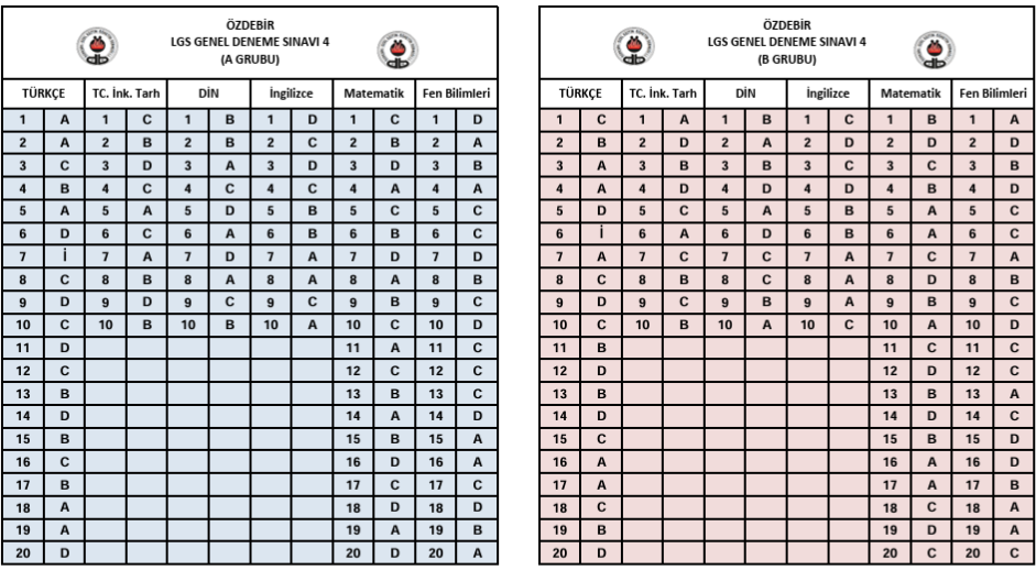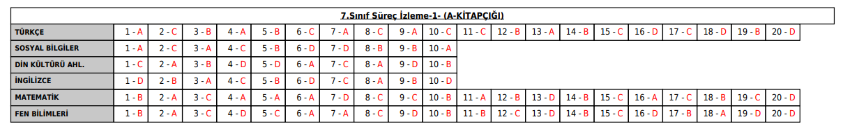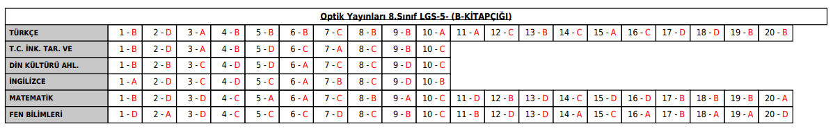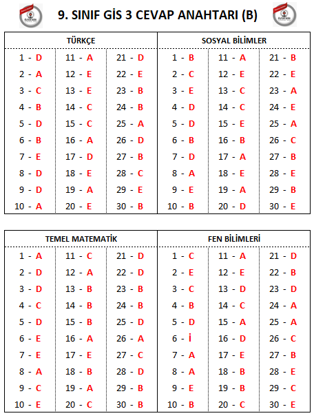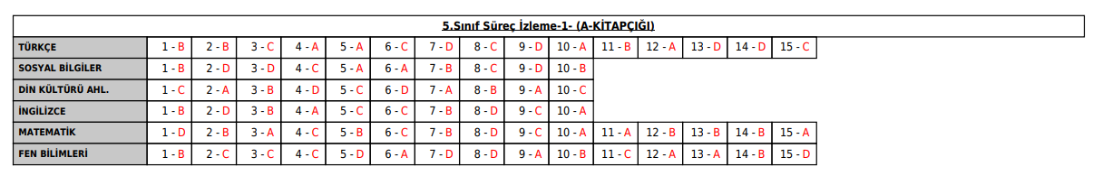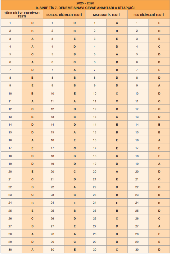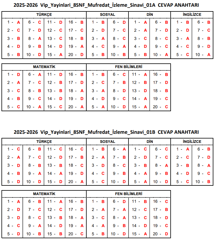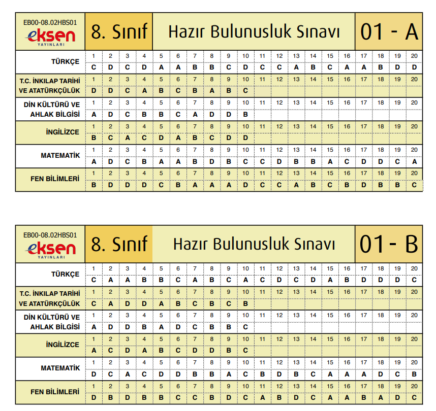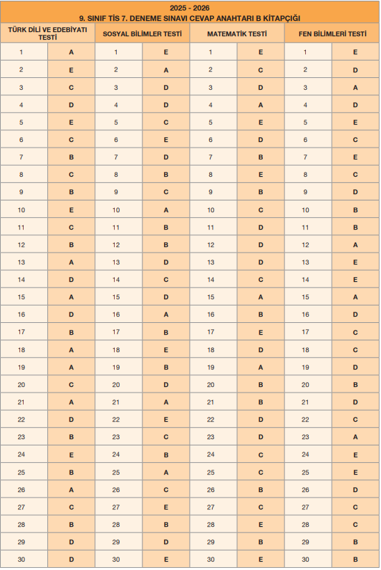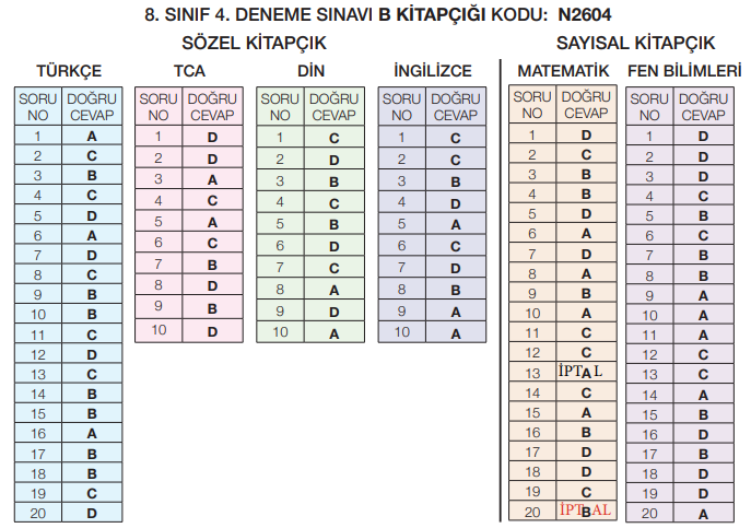 29 - 30 Ocak ÜCRETSİZ DENEME CEVAP ANAHTARI 5 - 6 - 7 - 8