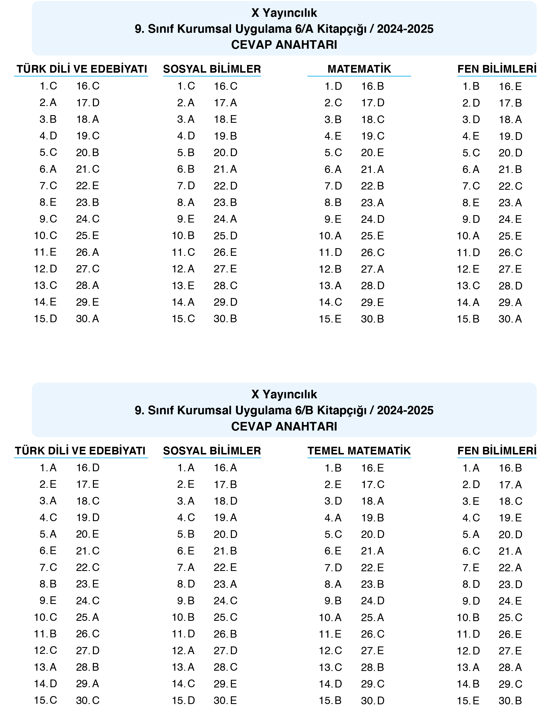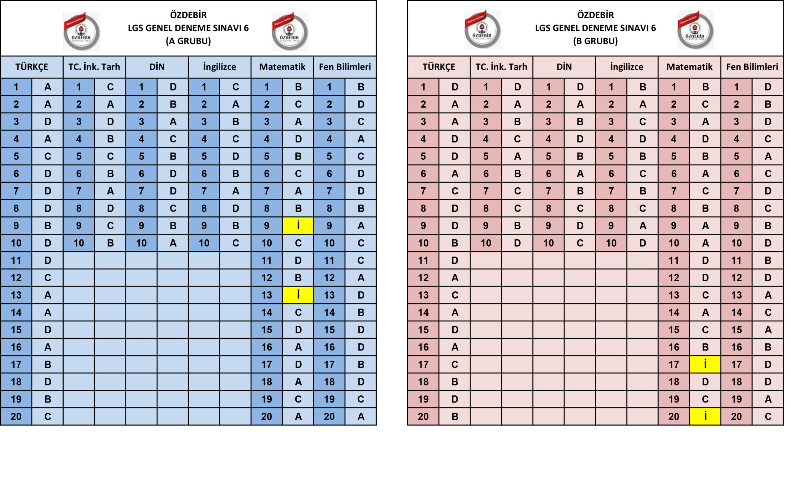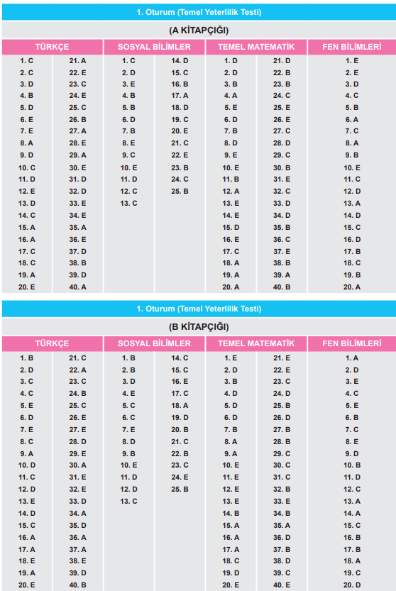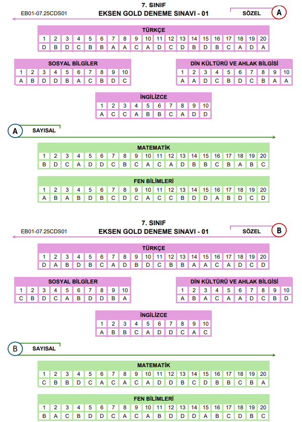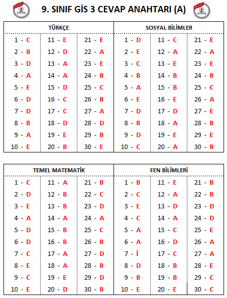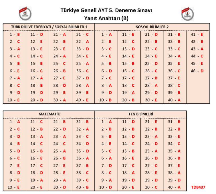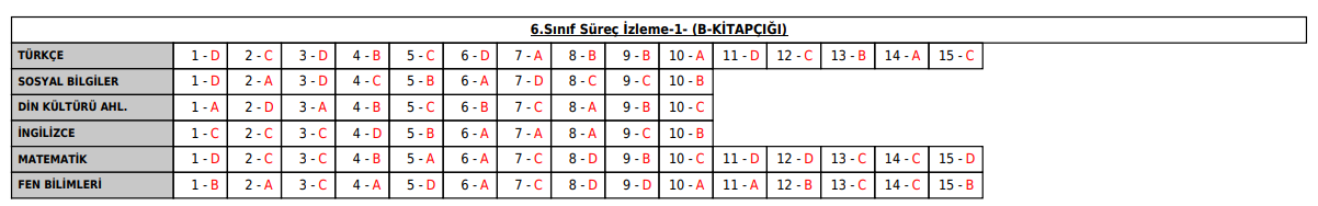 29 - 30 Ocak ÜCRETSİZ DENEME CEVAP ANAHTARI 5 - 6 - 7 - 8