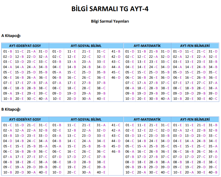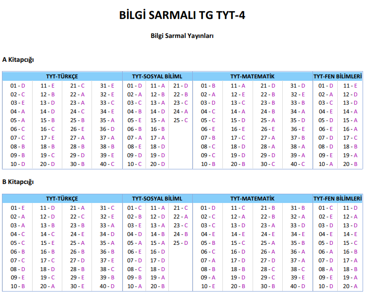 23 - 26 Mayıs BİLGİ SARMALI TG 4.DENEME TYT - AYT