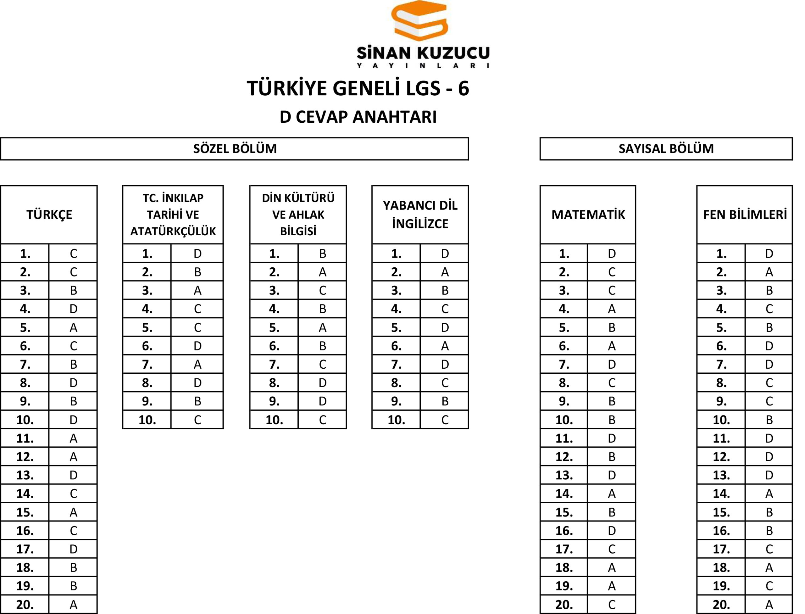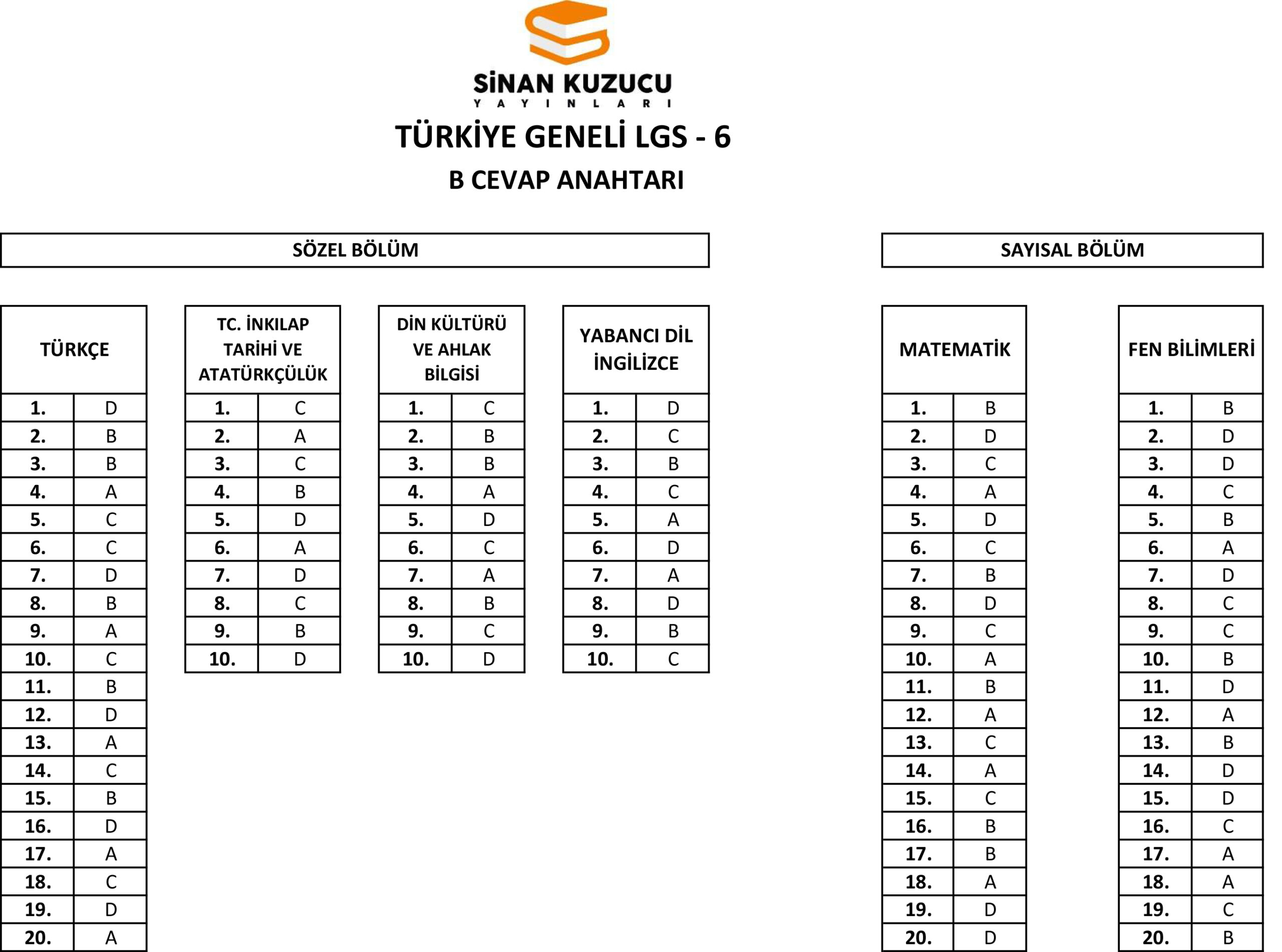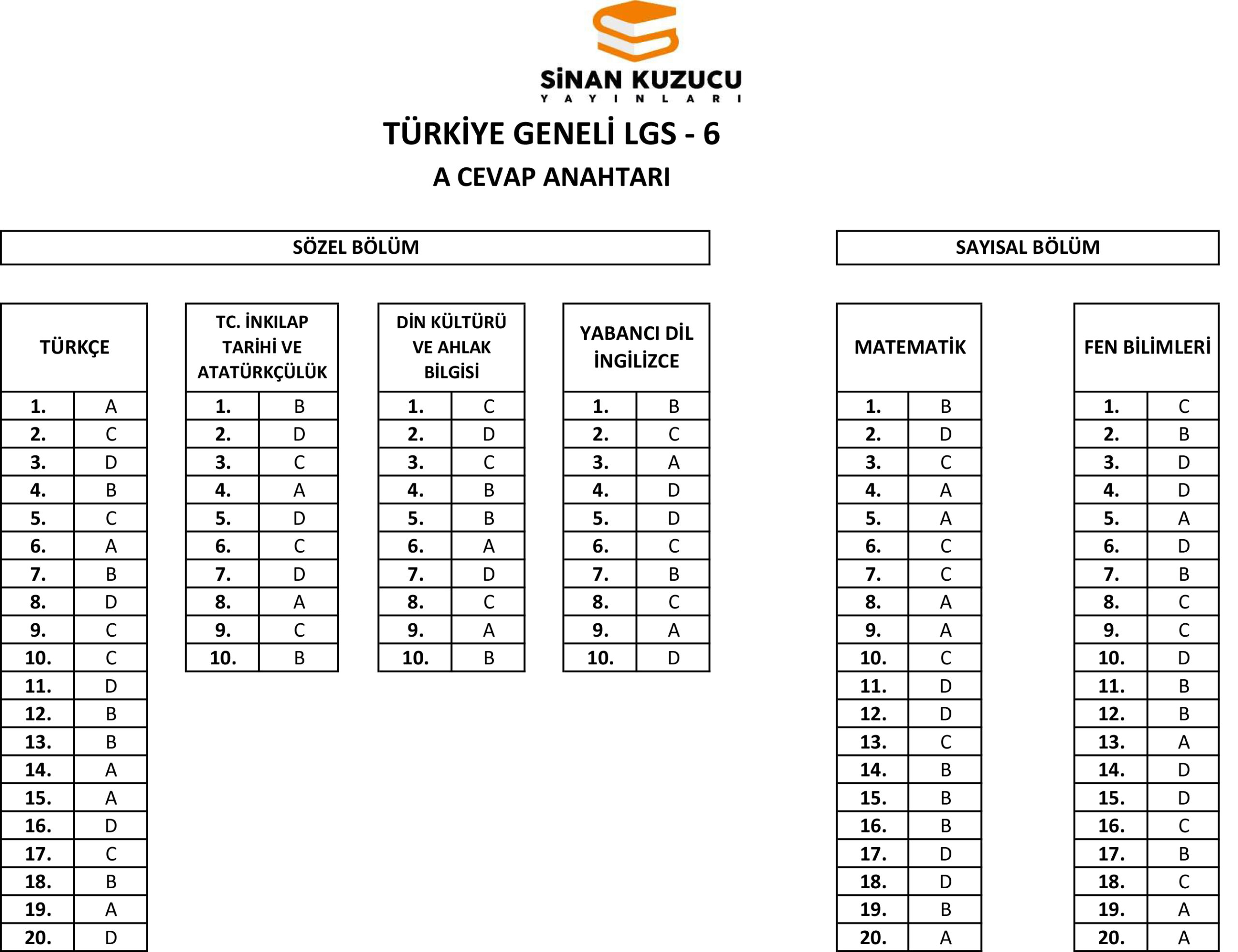 23 - 25 Mayıs SİNAN KZUCU TG 6.DENEME 8.SINIF