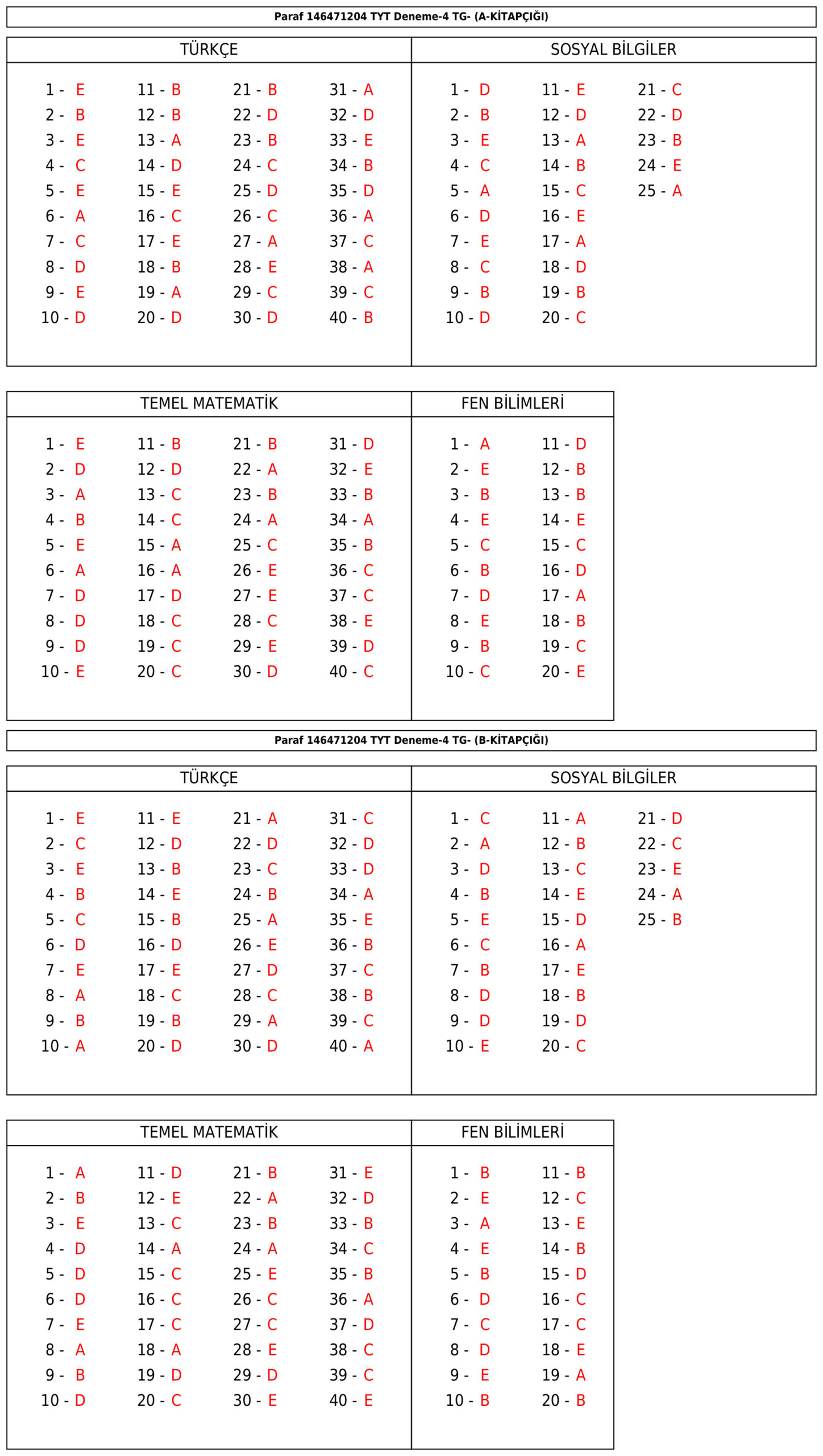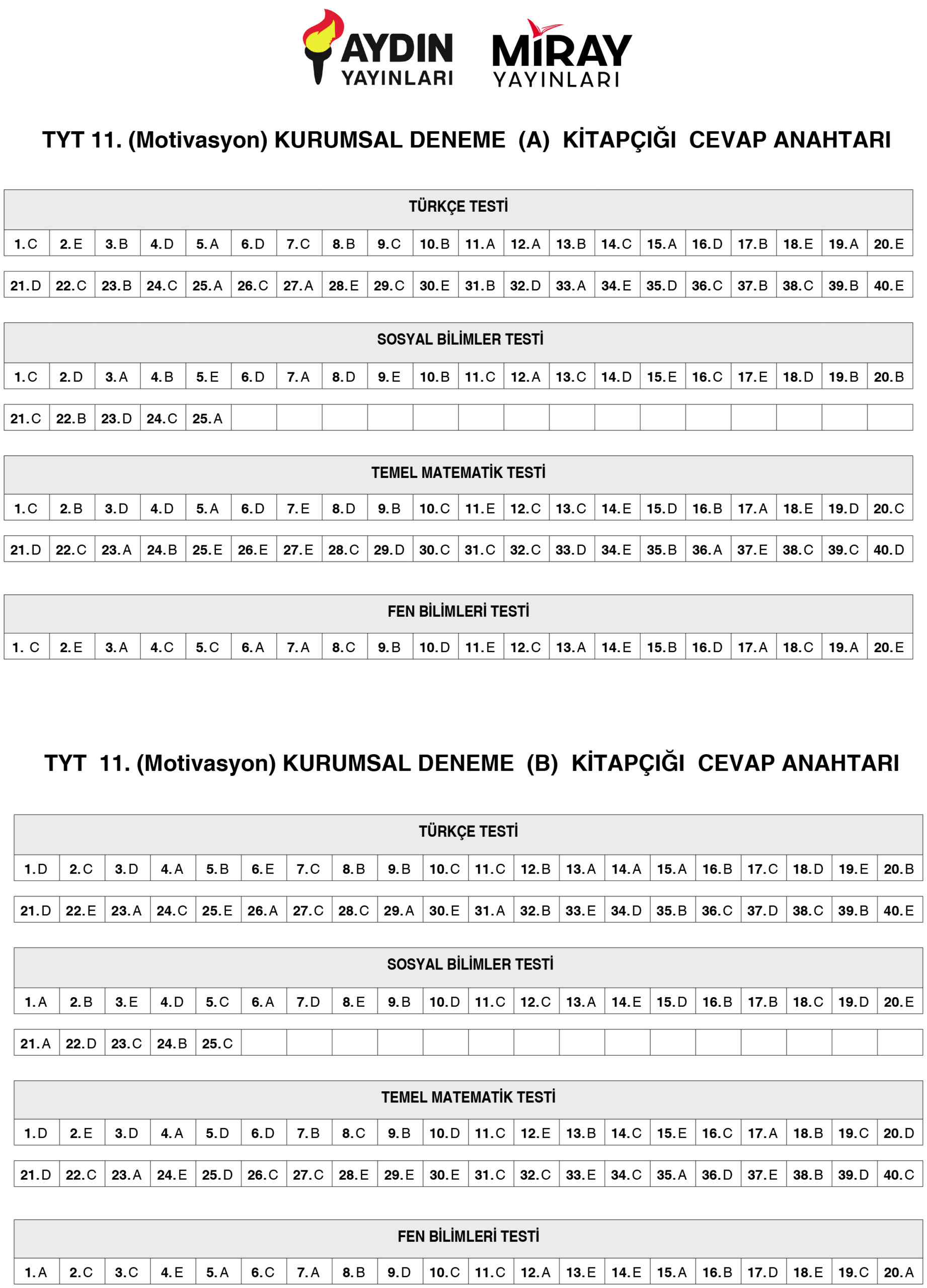 09 - 12 Mayıs YANIT TG DENEME TYT - AYT