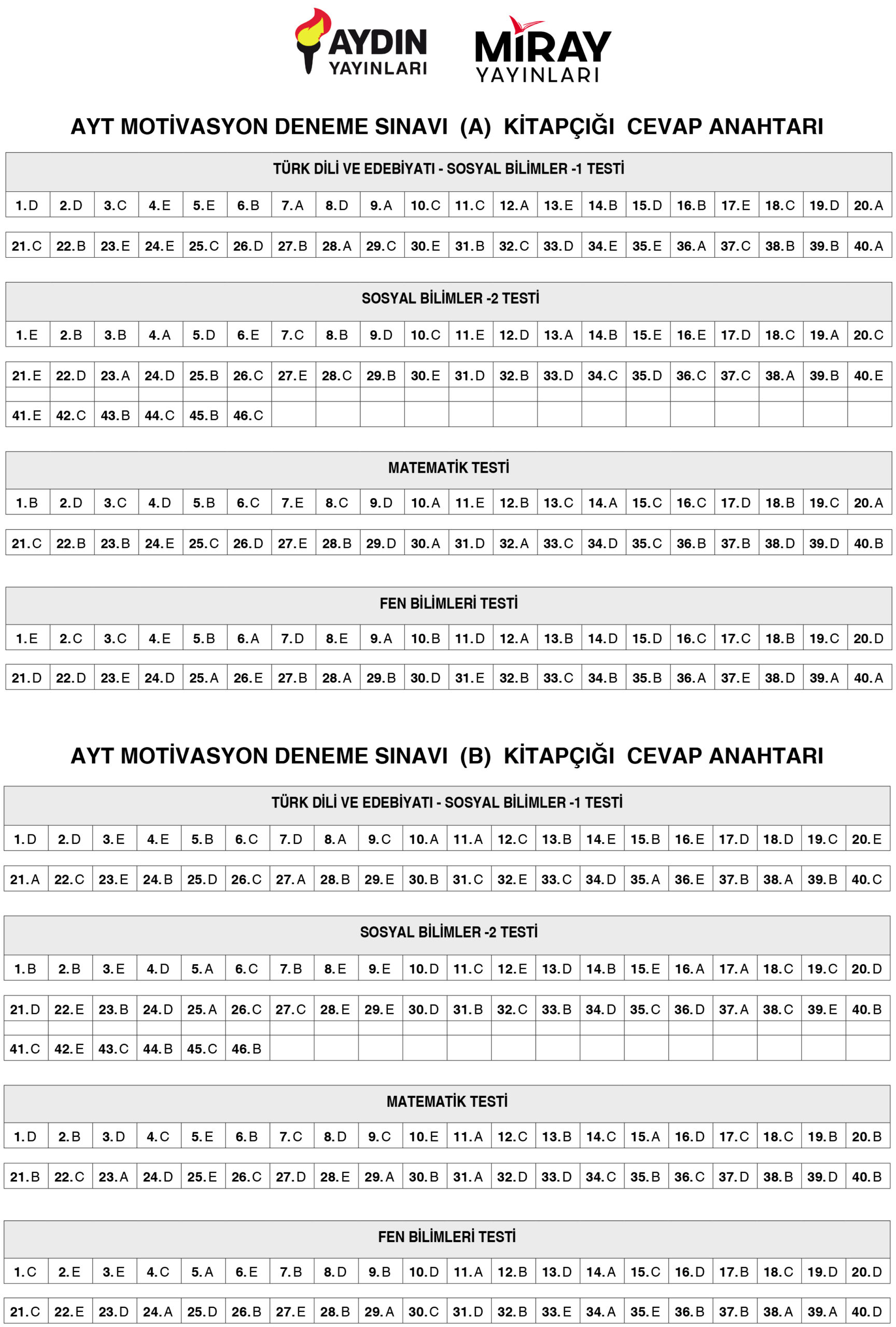 09 - 12 Mayıs MİRAY TG DENEME TYT - AYT