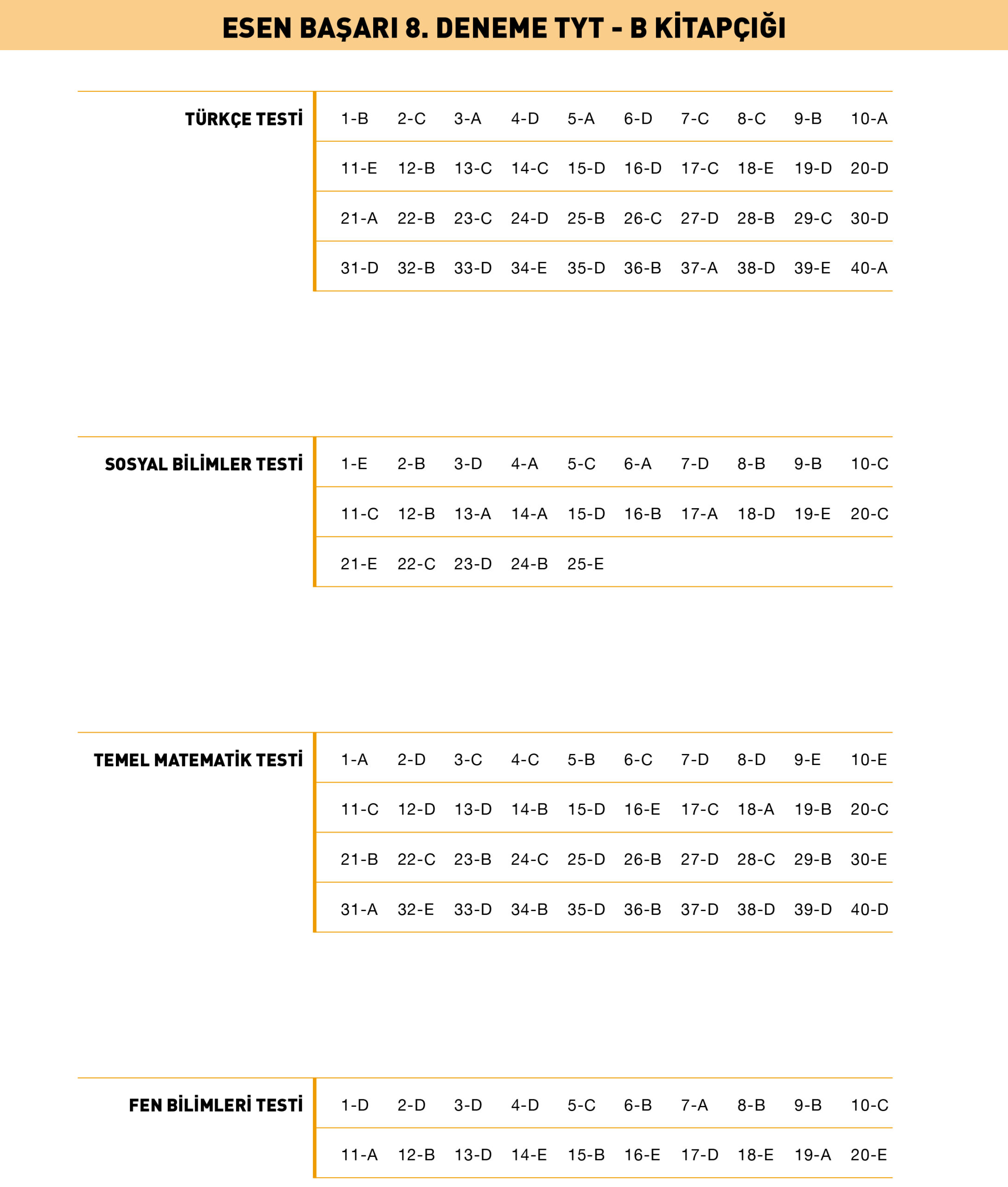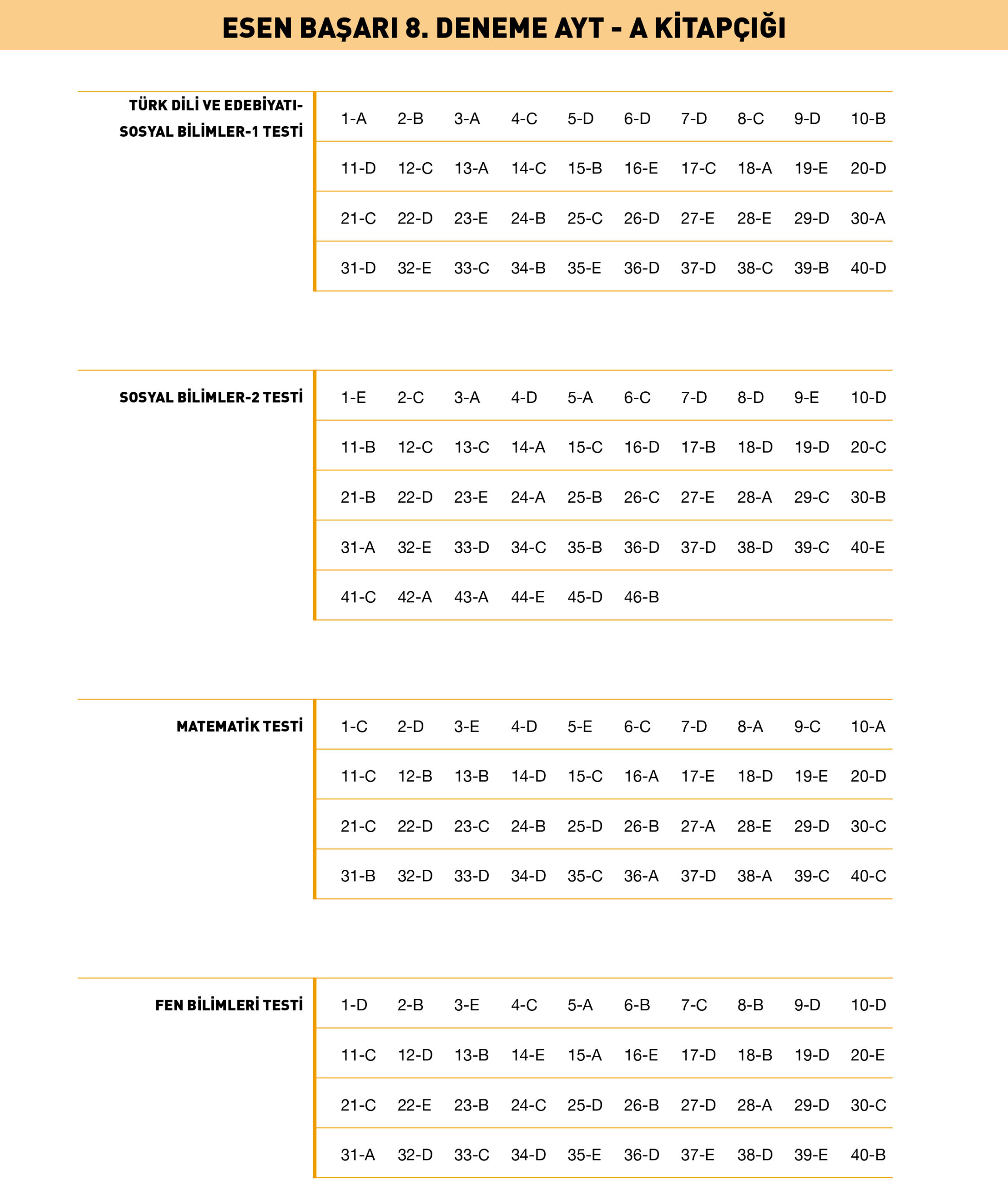 13 - 16 Haziran ESEN BAŞARI 8.DENEME TYT - AYT