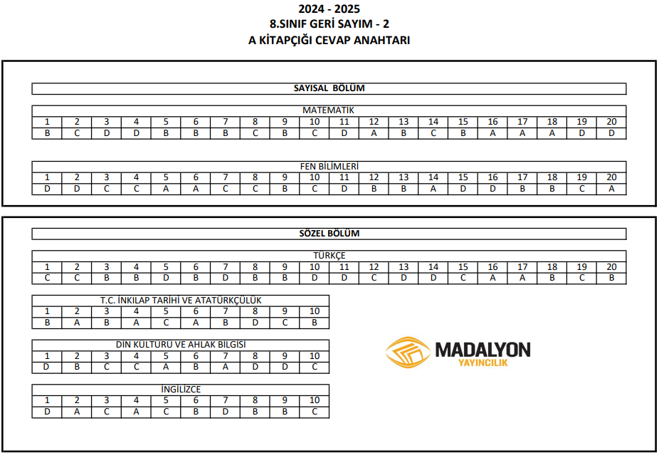 12 Haziran MADALYON GERİ SAYIM 2 8.SINIF