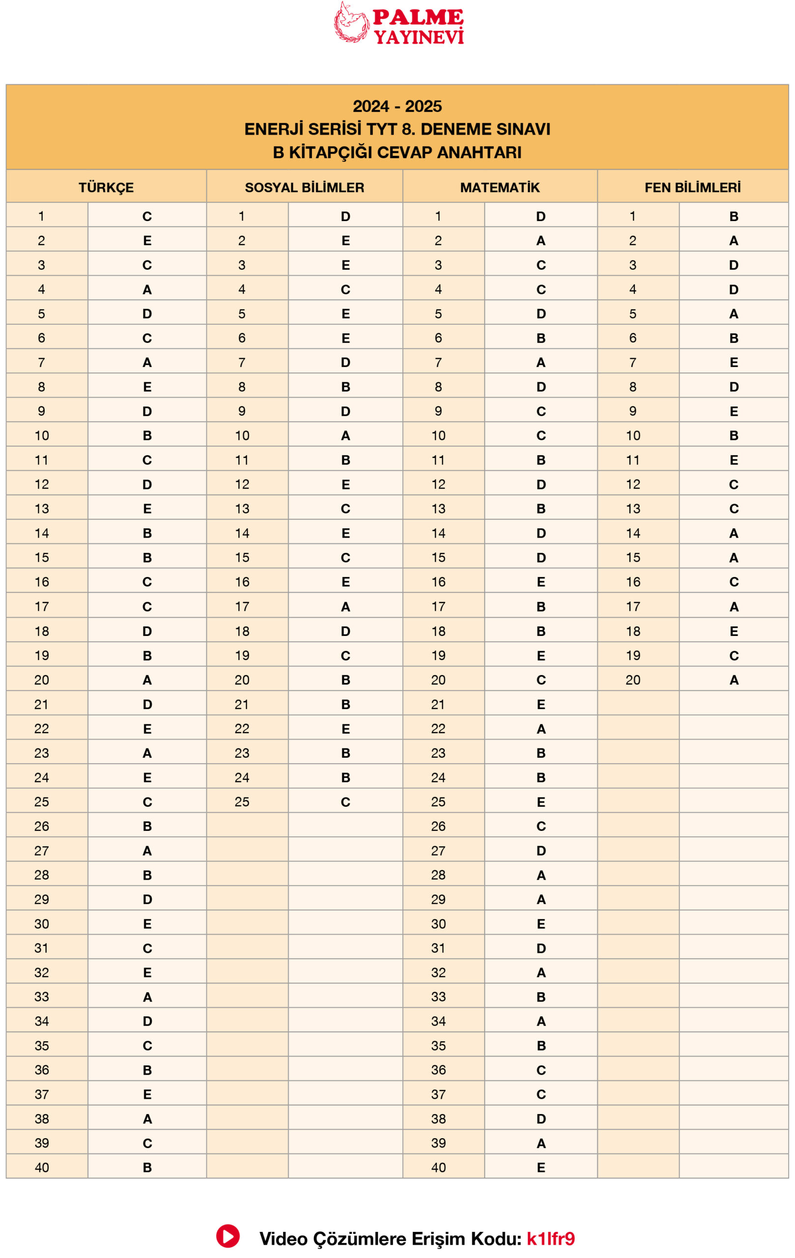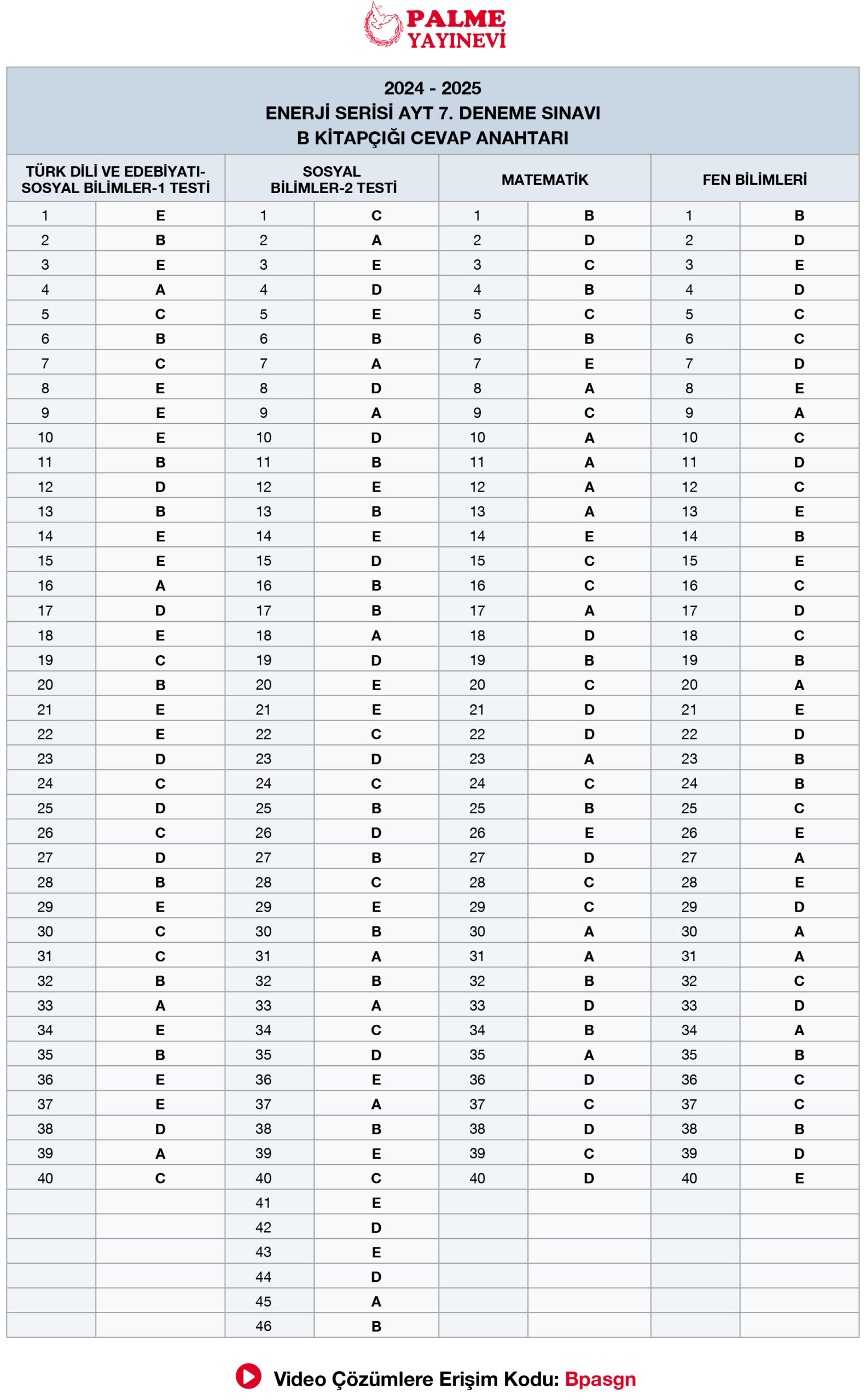 3 Haziran PALME ENERJİ DENEME TYT - AYT