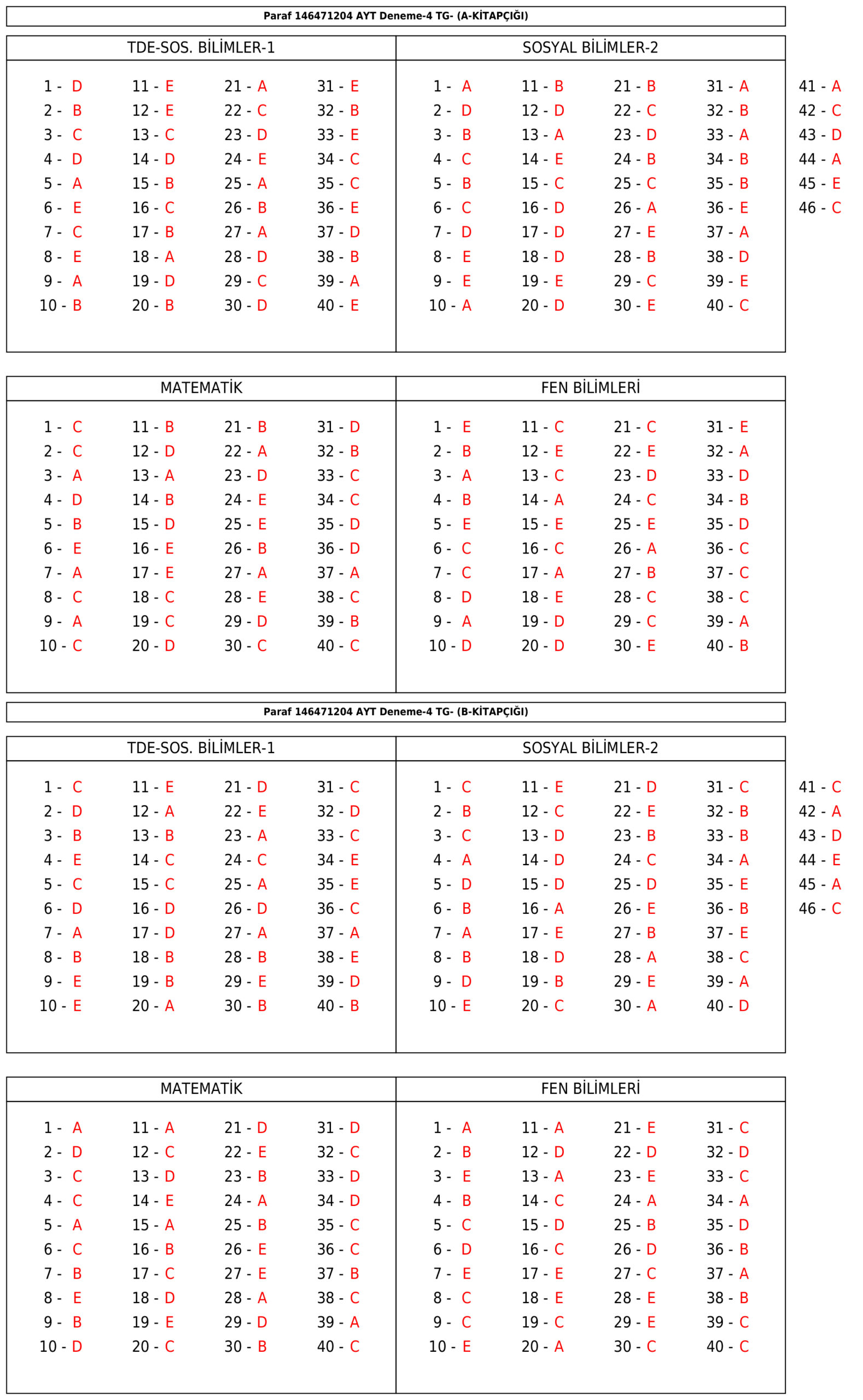 30 Mayıs - 2 Haziran PARAF TG 4.DENEME TYT - AYT