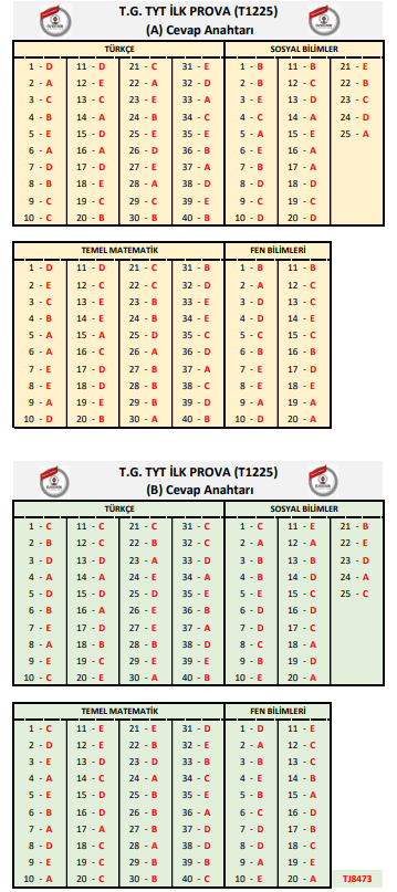 22-25 Kasım ÜÇ DÖRT BEŞ TG İLK PROVA TYT