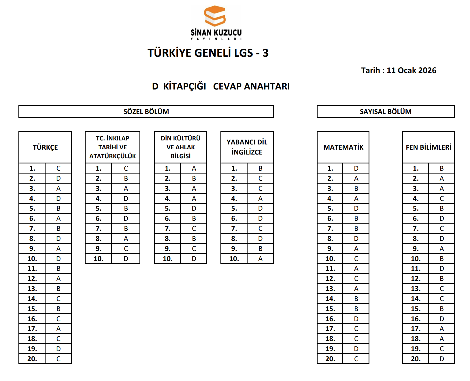 9-11 OCAK 2026 SİNAN KUZUCU 3.DENEME 8.SINIF