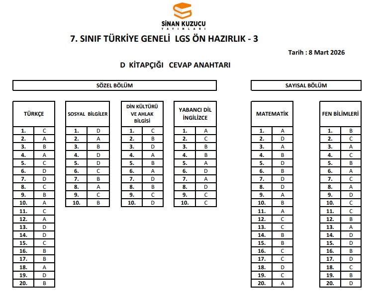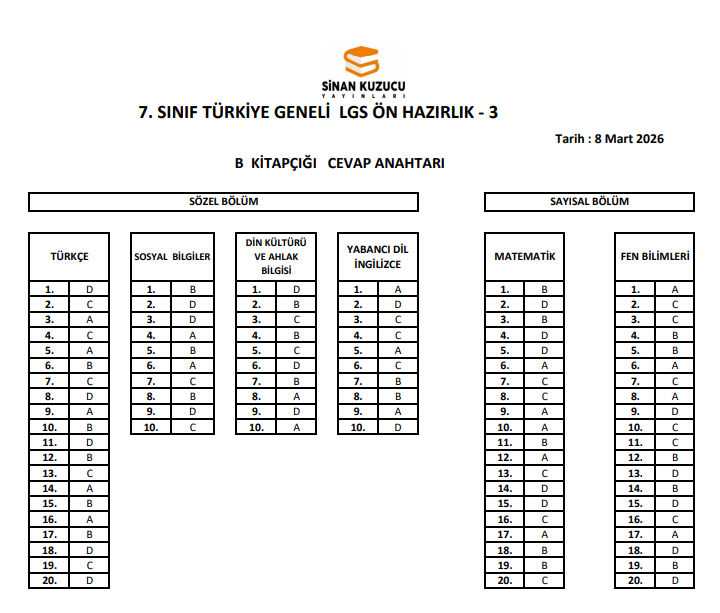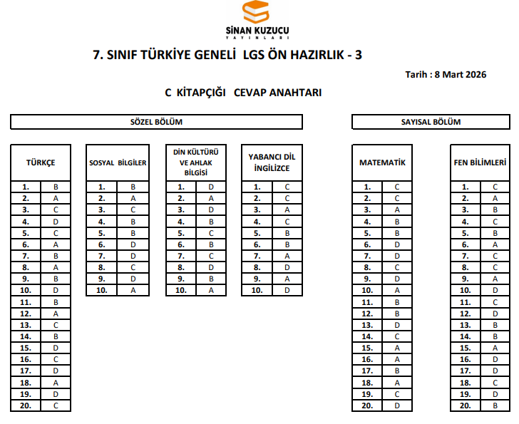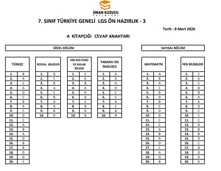 6-8 MART 2026 SİNAN KUZUCU 3.DENEME 7.SINIF