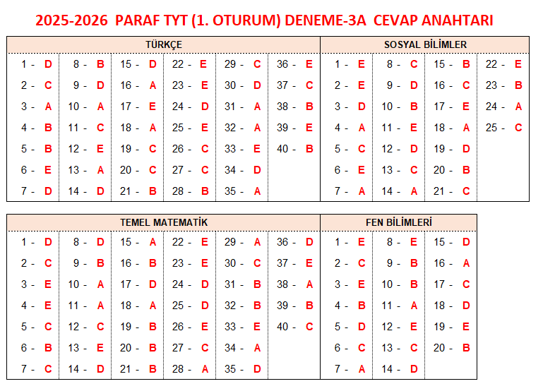 3-5 OCAK 2026 EĞİTİM VADİSİ 3.DENEME TYT