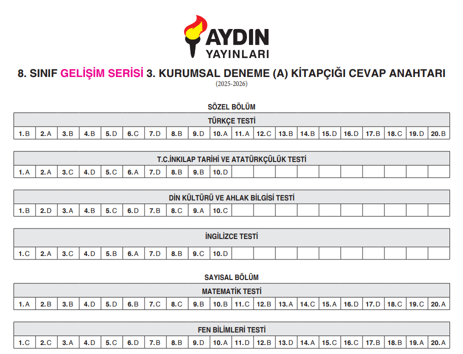 13-15 MART 2026 AYDIN GELİŞİM 3.DENEME 8.SINIF