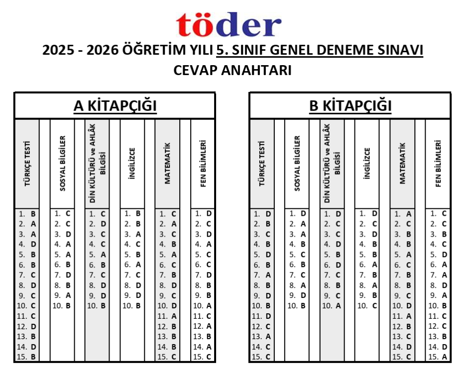 27-29 MART 2026 TÖDER 1.DENEME 5.SINIF