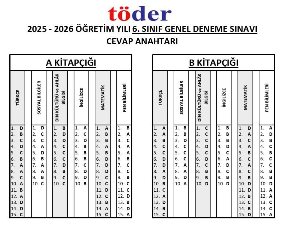 27-29 MART 2026 TÖDER 1.DENEME 6.SINIF