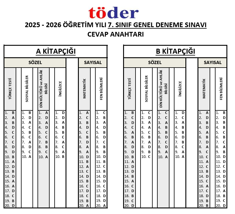 27-29 MART 2026 TÖDER 1.DENEME 7.SINIF