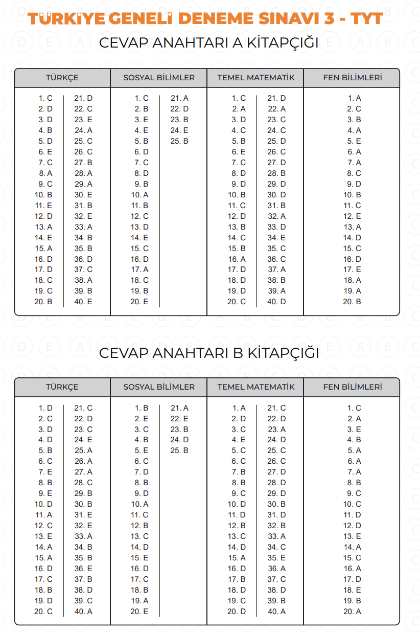 7 - 10 Mart 3D YAYINLARI TG 3.DENEME TYT - AYT