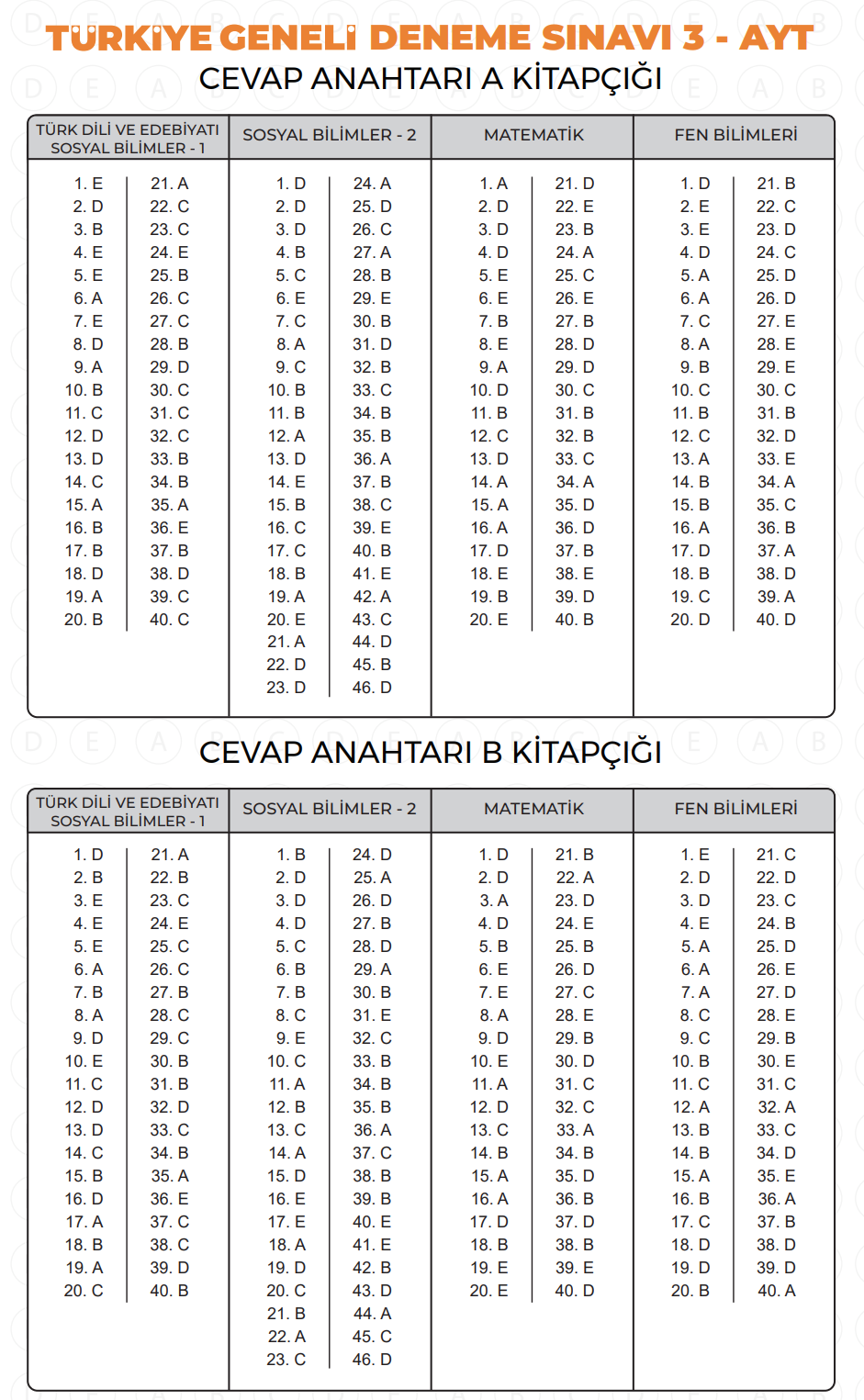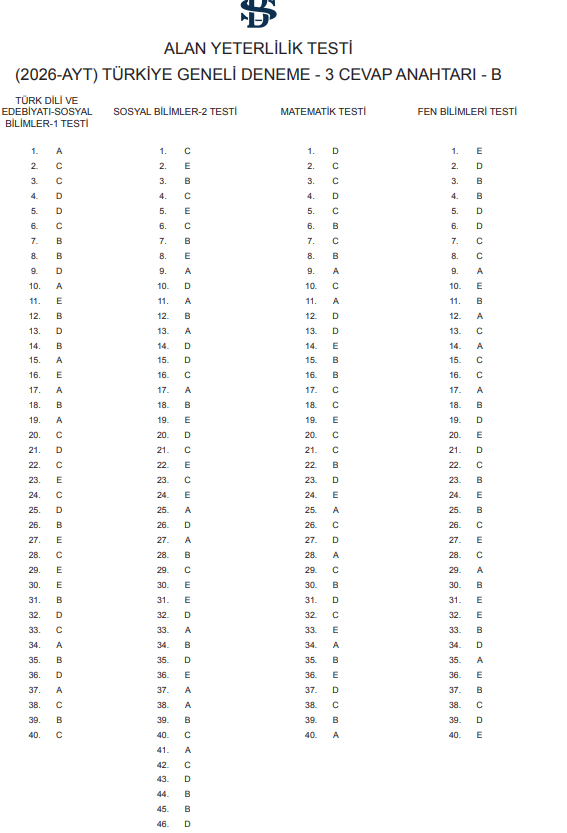3-6 NİSAN 2026 BENİM HOCAM 3.DENEME AYT