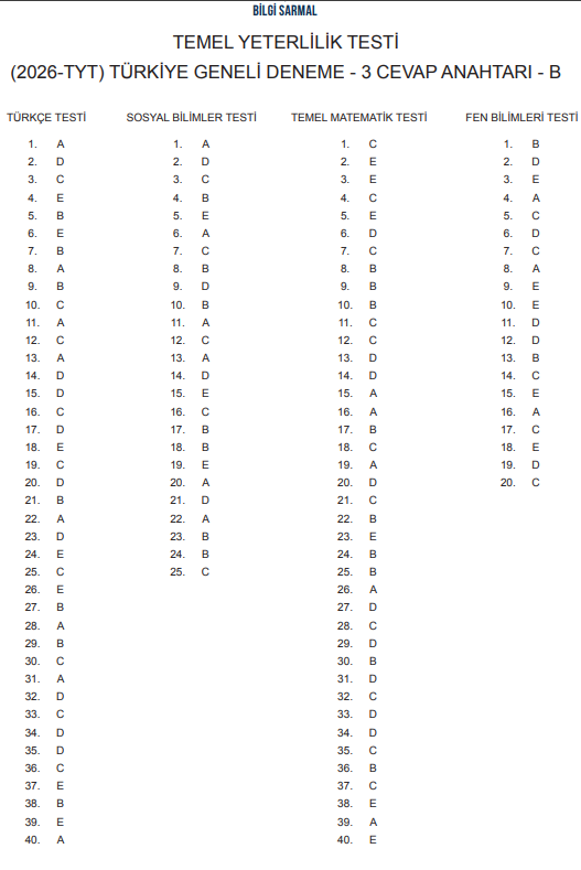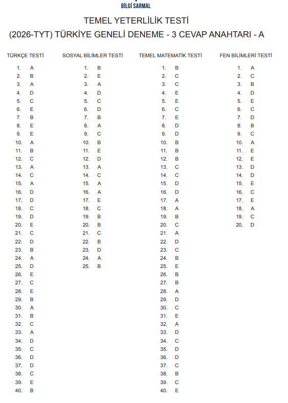 3-6 NİSAN 2026 BİLGİ SARMAL 3.DENEME TYT