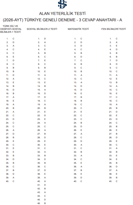 3-6 NİSAN 2026 BİLGİ SARMAL 3.DENEME AYT