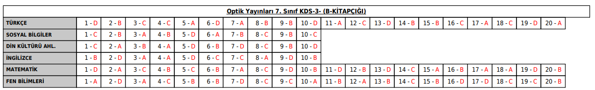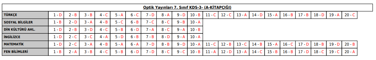 3-5 NİSAN 2026 OPTİK 3.DENEME 7.SINIF
