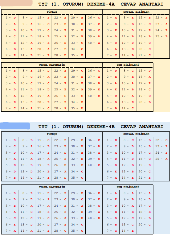 8-11 Kasım 4K 3.DENEME TYT-AYT